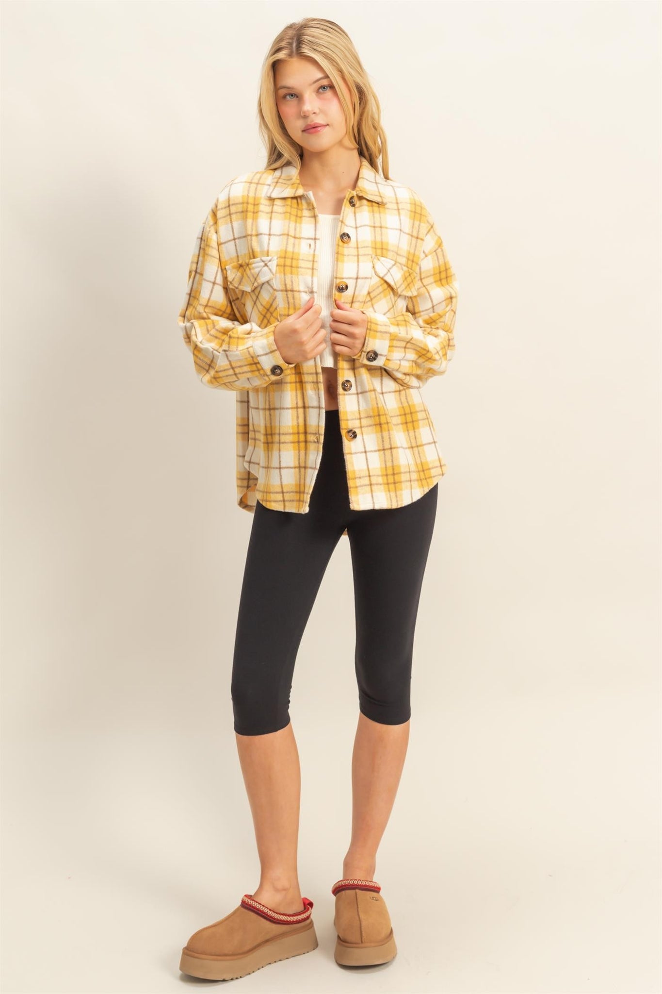 Layer up with our Collared Plaid Shacket, the perfect piece for effortless style. This versatile shirt-jacket hybrid features a classic plaid pattern and structured collar that works beautifully over tees, tanks, or dresses. The relaxed fit offers comfort without sacrificing polish, making it ideal for casual outings, weekend adventures, or cozy evenings out. Whether you're dressing it up or down, this wardrobe staple brings warmth and character to any look.